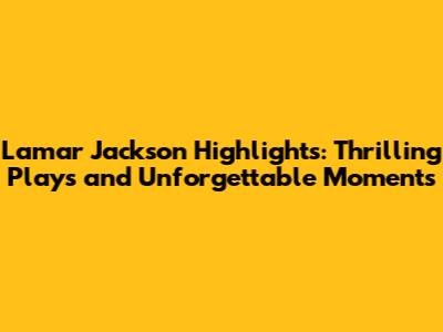 Lamar Jackson Highlights: Thrilling Plays And Unforgettable Moments