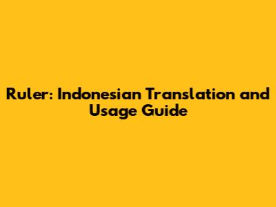 Ruler: Indonesian Translation And Usage Guide